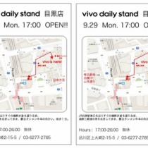 vivo daily stand 目黒店品川区上大崎2-15-503-6277-2785営業時間 : 夕方5時~深夜2時席数 : オールスタンディング(イス無し)メニュー : ワイン400~700円、DELI all400円、コーヒー350円 ...